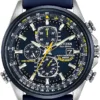 Citizen Eco-Drive AT8020-03L – atomic timekeeping, world chronograph, 26 time zones, 200m water-resistant, blue dial & strap.